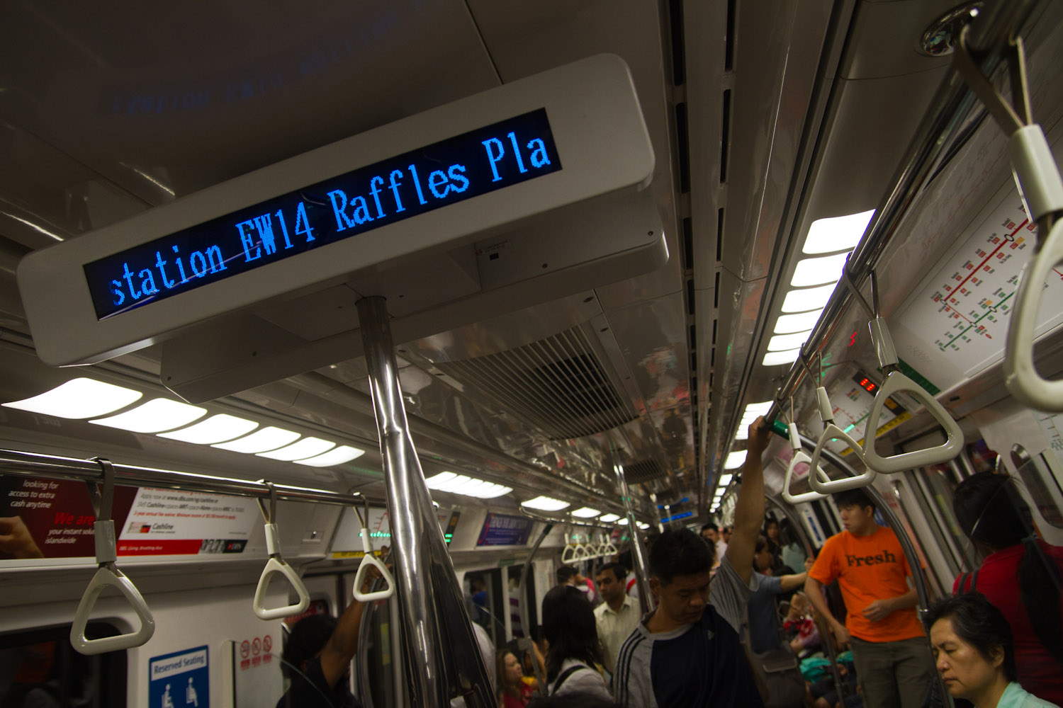Llegando a la céntrica estación de Raffles Place en el metro de Singapur.