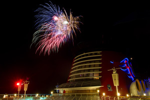 Fuegos artificiales en un crucero de Disney Cruise Line por el Mediterráneo